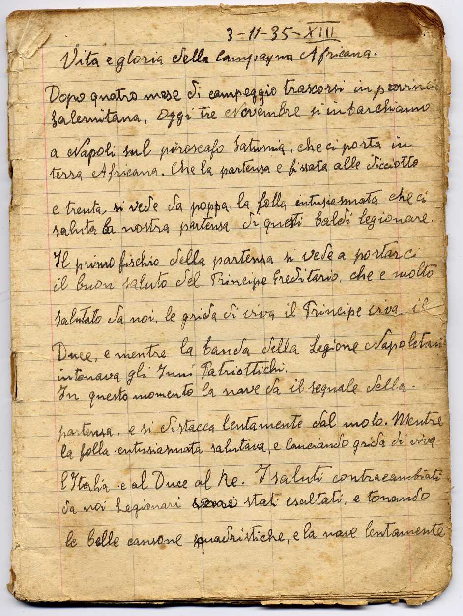 Pagina estratta dal diario del soldato Bertiglia Paolo.